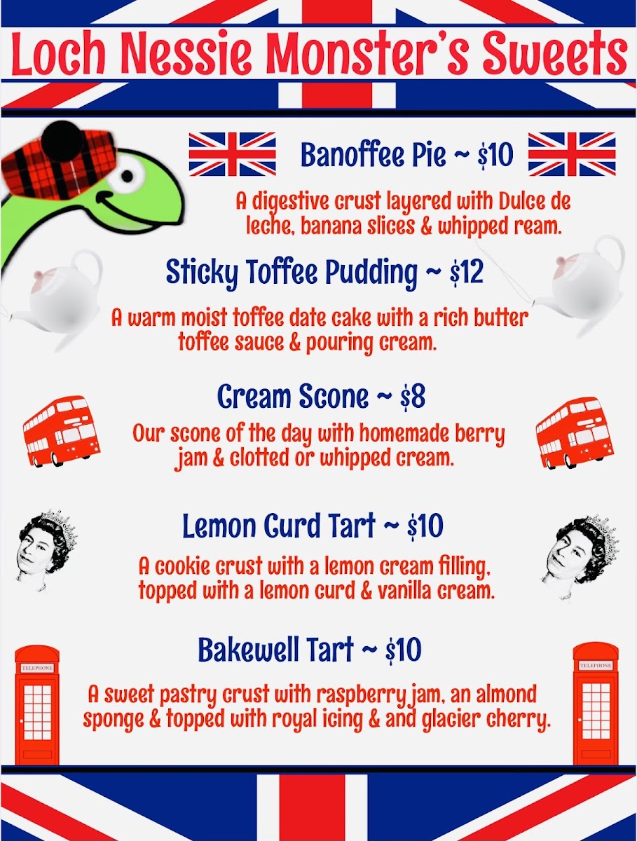 Overall, Nessa’s British Delights Menu is a celebration of British culinary tradition with a modern, comforting flair. Whether you're craving something savory like the hearty pies or indulging in one of their irresistible sweet treats, this menu has something to satisfy every craving. Each dish is crafted with care, ensuring that every bite transports you to the heart of Britain, all while offering a cozy and welcoming experience that will keep you coming back for more.